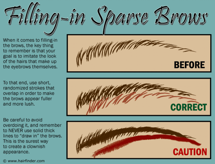 When you’ve chosen your brow pencil, the next step is to learn to use it properly. Since the goal is enhancement of the brows, we need to discuss exactly what that means. There are two main functions brow enhancement is meant to perform: either you mean to fill-in sparse brows, or you mean to emphasize the arch of your natural brow.